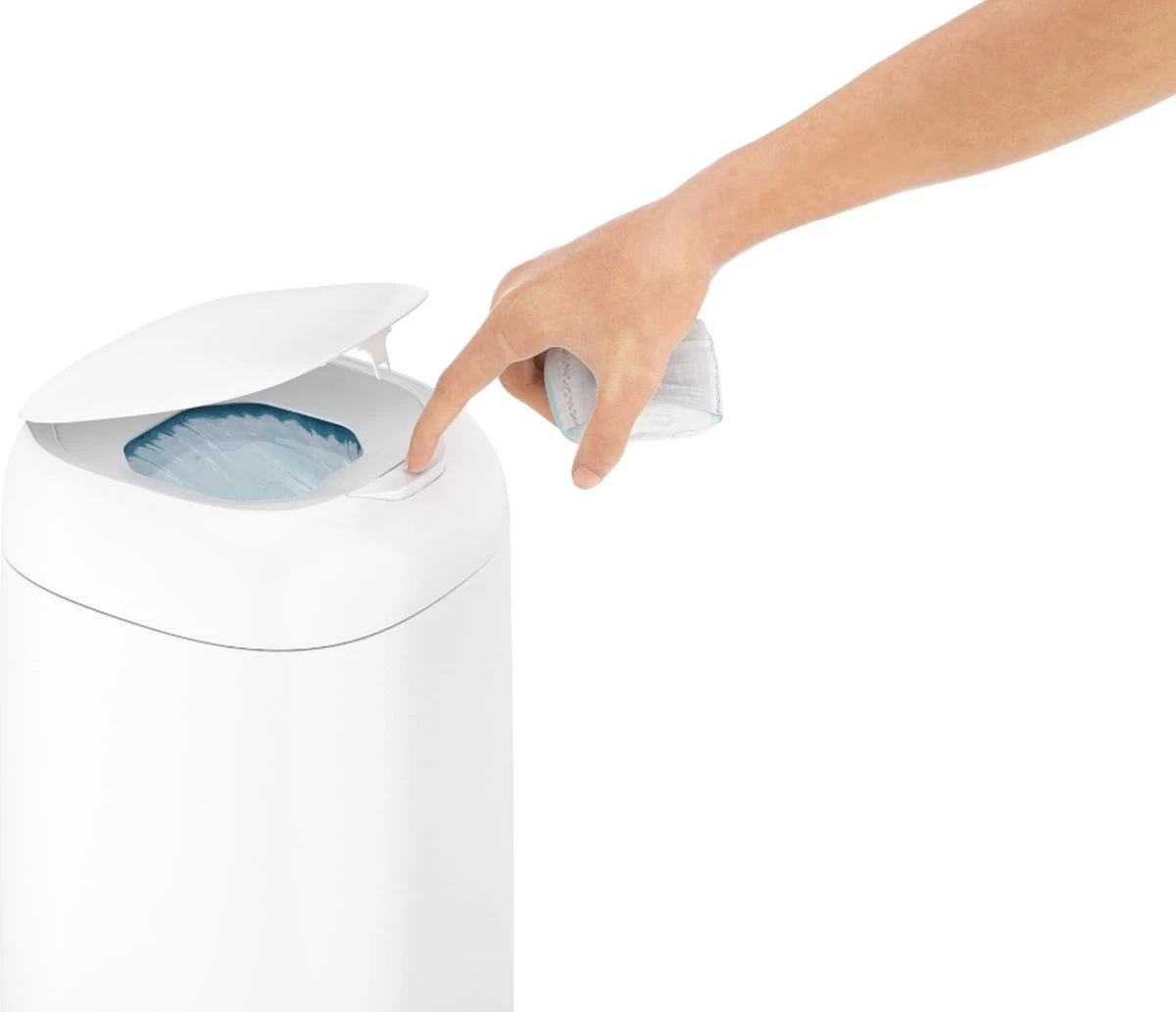 Ook handig: je kan de luieremmer makkelijk bedienen met 1 hand!