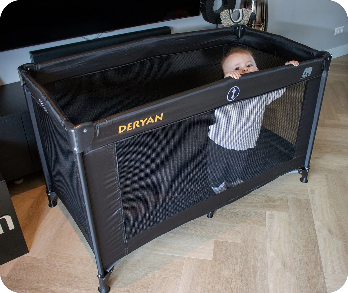 Altijd een oogje in het zeil: de Deryan Believer is aan de zijkanten voorzien van fijn gaas. Hierdoor kun jij goed in de gaten houden wat je kleintje uitspookt. Daarnaast zorgt het gaas er ook voor dat er voldoende ventilatie is.
