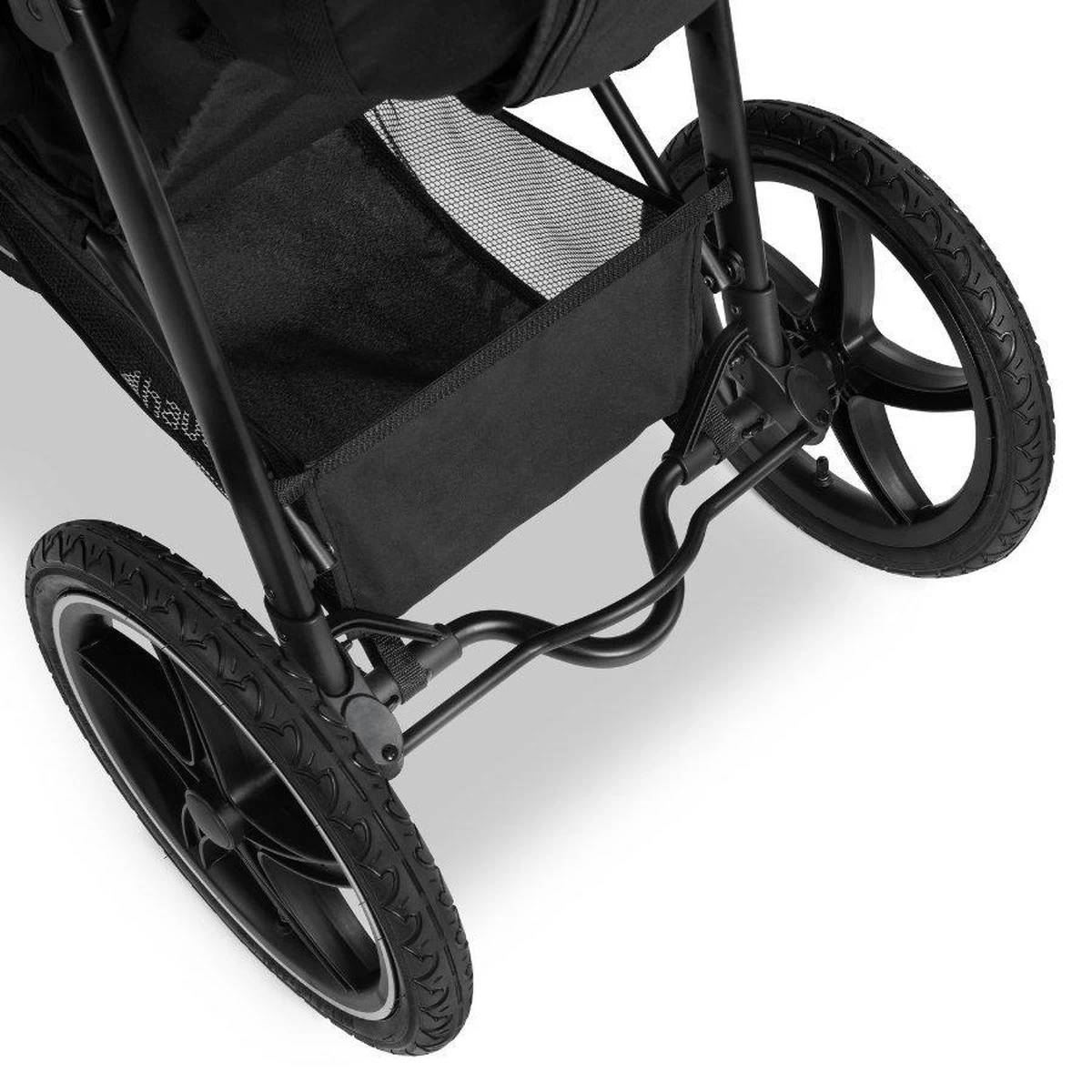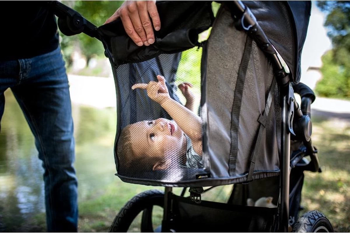 Zodat uw kind zich vanaf het prille begin tot aan de kleutertijd comfortabel voelt, biedt de extreem veerkrachtige kinderwagen een XL-ligvlak en een grote kap met UV-bescherming 50+, die beschermt tegen zon en regen. Op warme dagen kun je hem ook openen, waardoor een mesh-stof tevoorschijn komt die luchtdoorlatend is en dient als een groot kijkvenster. Reflecterende lichtstrips op de motorkap brengen jou en je gezin veilig thuis aan het einde van je avontuur. Je verpakt het eten voor je tocht gewoon in de enorme mand.