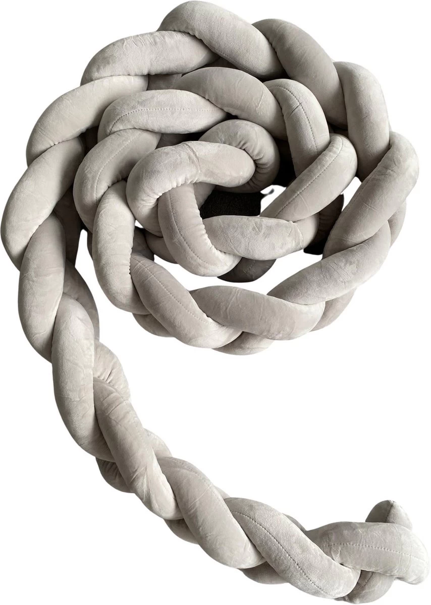 De gevlochten bedbumpers / bedomranders bestaat uit PP/katoen vulling. Dit materiaal is stevig, duurzaam en herbruikbaar. De buitenkant bestaat uit polyester en heeft een velours-look.