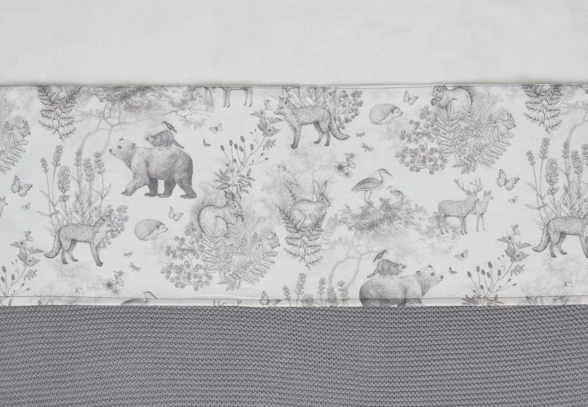 Het lakentje is wit met een geprinte boord aan de bovenkant. De boord heeft een lieve bosdierenprint van het Pimpelmees x Jollein thema. De boord sla je om de deken heen ter bescherming en het staat ook nog eens erg leuk.