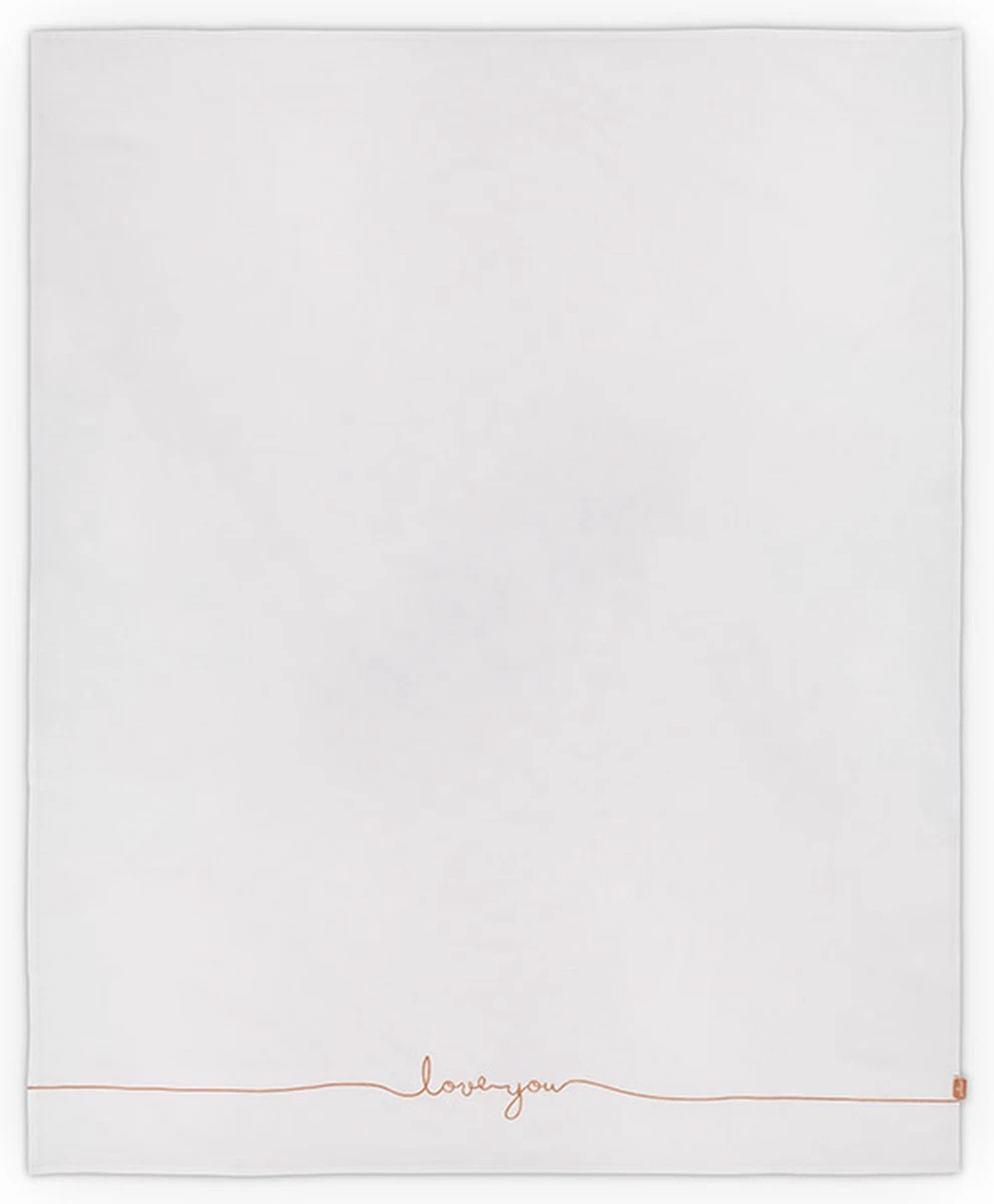 Met een wit lakentje kun je het bedje van jouw baby veilig, kort en strak opmaken. Door de zijkanten van het lakentje onder het matrasje te stoppen, slaapt jouw kleintje niet alleen veilig, maar heeft het ook een geborgen gevoel. Dit lieve lakentje met de tekst ‘love you’ past perfect bij de dekens uit het Basic knit thema en het Bliss knit thema van Jollein.