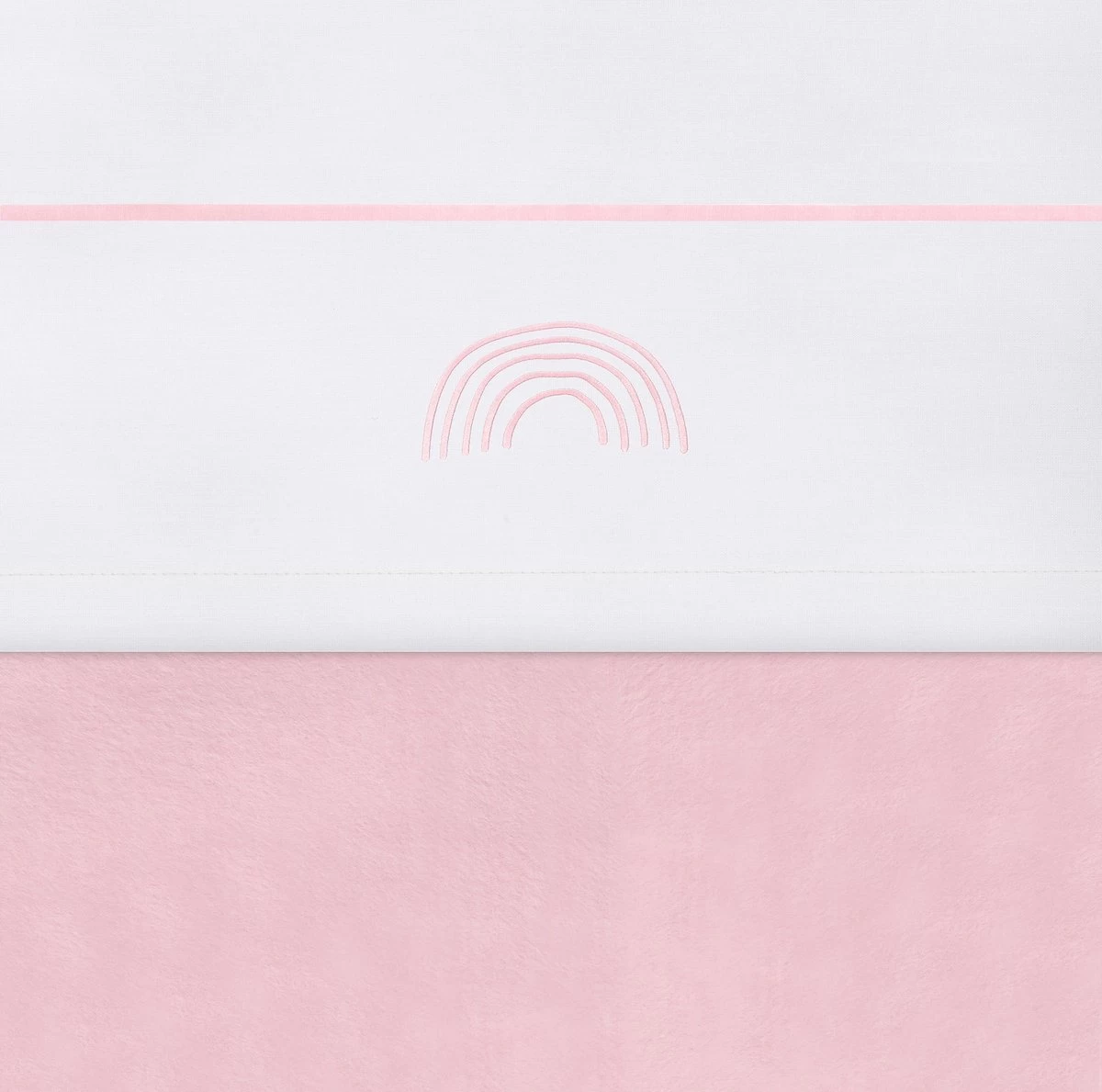 Dit laken komt uit de uitgebreide rainbow collectie. Je kunt heel veel producten krijgen met dit regenboogje: babynestje, slaapzak, boxkleed, badcape, slabbetjes, opbergmanden en zelfs een bijpassende wandlamp. Laat alles met elkaar matchen en creëer eenheid en rust in de babyuitzet.