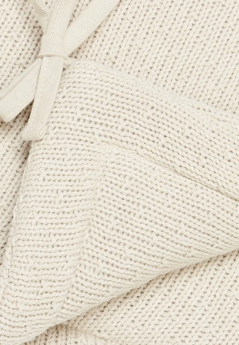 Maak de sfeer compleet met de bijpassende dekens, kruikenzak, voetenzak, de matchende opbergmandjes, de wasbare hoes voor het aankleedkussen en het boxkleed. De luxe van dit breipatroon geeft een rijke en warme sfeer aan de babykamer.