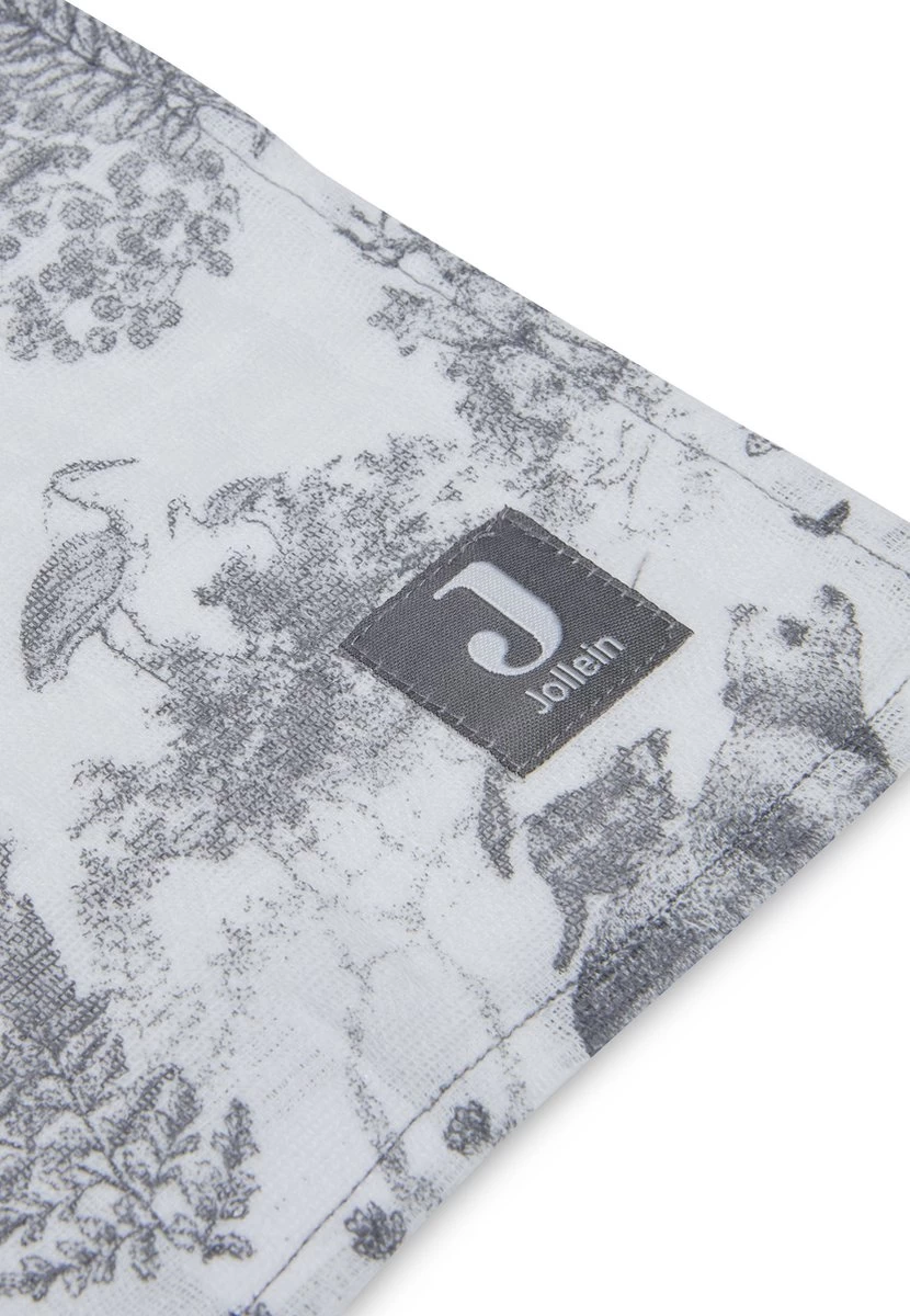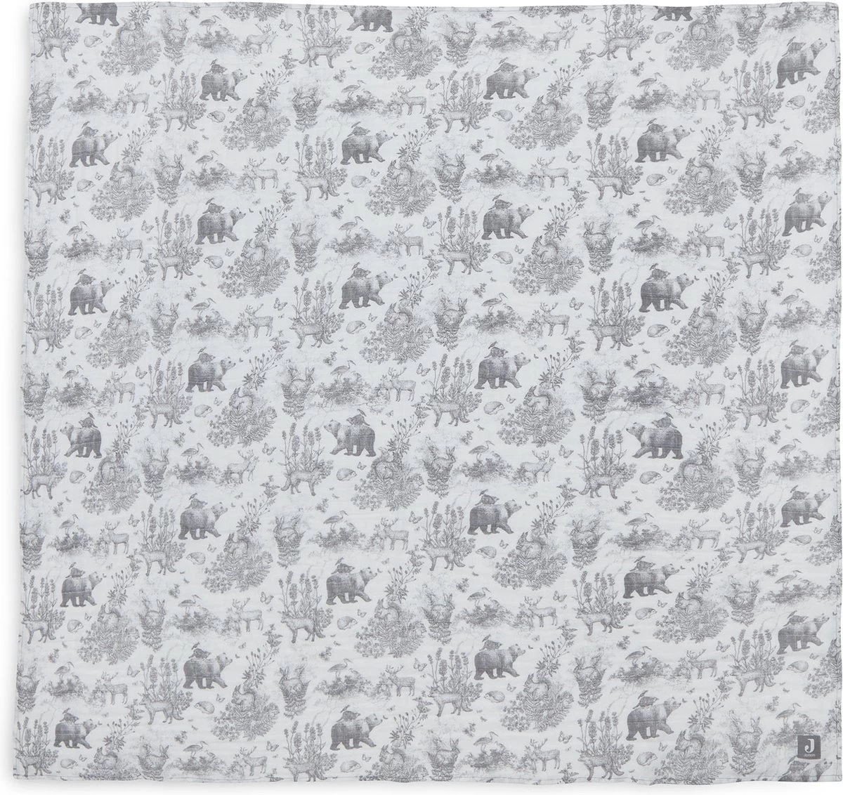 Deze leuke hydrofiele doeken hebben het schattige all over printje van het Pimpelmees x Jollein bosdieren thema. De ondergrond is off white en de print is gedrukt in een warme grijze kleur.
