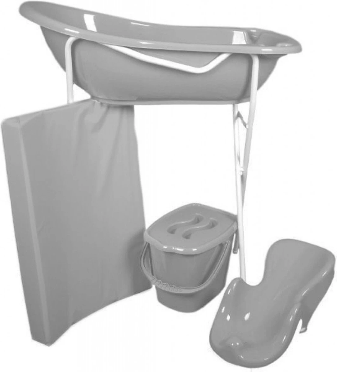 Het badje heeft een mooie vorm en is inclusief afvoer. Het badzitje kan gemakkelijk in het badje geplaatst worden door middel van zuignappen. De standaard is van metaal gemaakt met rubberen voetjes om de vloer te beschermen en is gemakkelijk in te klappen. Op het waskussen kun je je kindje verschonen en de luiers gooi je met gemak in de luieremmer! Kortom: deze badset is onmisbaar in de babykamer! Eigenschappen: