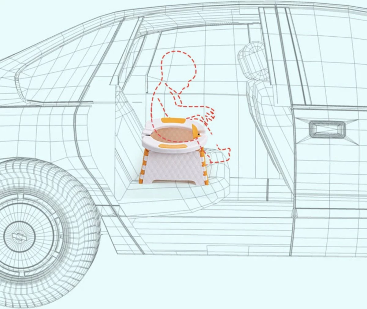 Met een gewicht van slechts 0,6 kilo kan hij na het opvouwen overal gemakkelijk worden neergezet, waardoor hij gemakkelijk mee te nemen is. Het kan snel geïnstalleerd worden om als babytoilet gebruikt te worden wanneer je buiten bent. Een gemakkelijke toiletoplossing voor wanneer je en je baby op reis gaat.