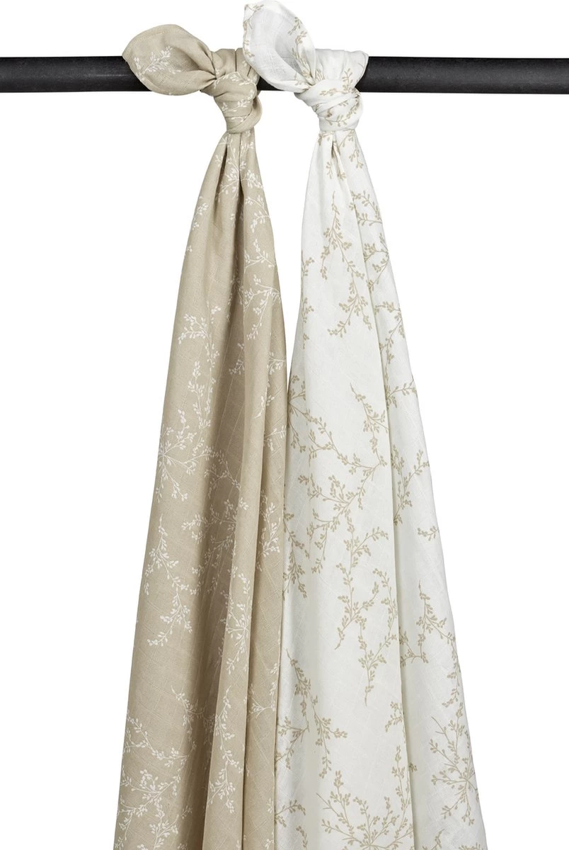 Deze multifunctionele Meyco Baby Hydrofiele Swaddles Branches Sand 2-pack zijn bedrukt met speelse takken. Zoals de naam al zegt: multifunctioneel. Of je ze nou als inbakerdoek, wikkeldoek, handdoek, borstvoedingscover, knuffeldoekje, spuugdoekje óf dekentje gebruikt; ze zijn standaard heerlijk zacht en comfortabel voor de tere babyhuid. Het 100% hydrofiel katoen neemt vocht zeer goed op en droogt ook nog eens supersnel. Onmisbaar en ideaal om altijd bij je te hebben!