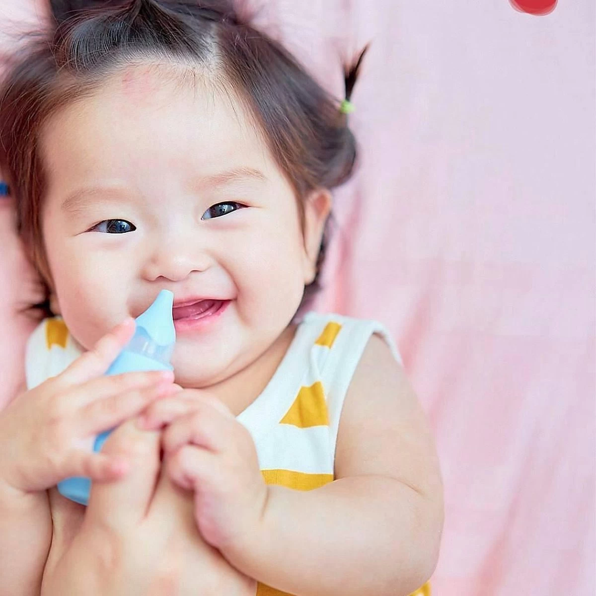 – Knijp de lucht uit het peertje alvorens het topje tegen de baby’s neusgat te plaatsen.