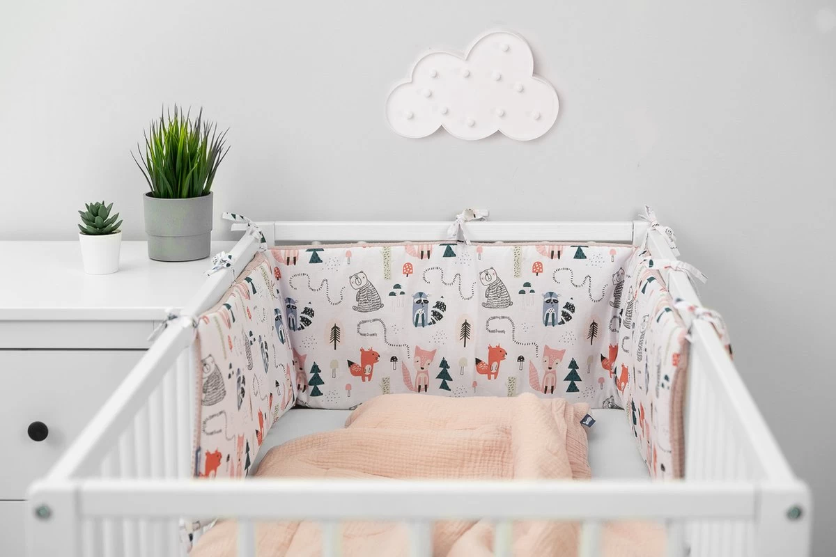 Sensillo Baby Bedbumper – Bedomrander – Anti Stootrand Ledikant – Bed Zijbeschermers – 180x30cm – Wafel Roze Vosjes