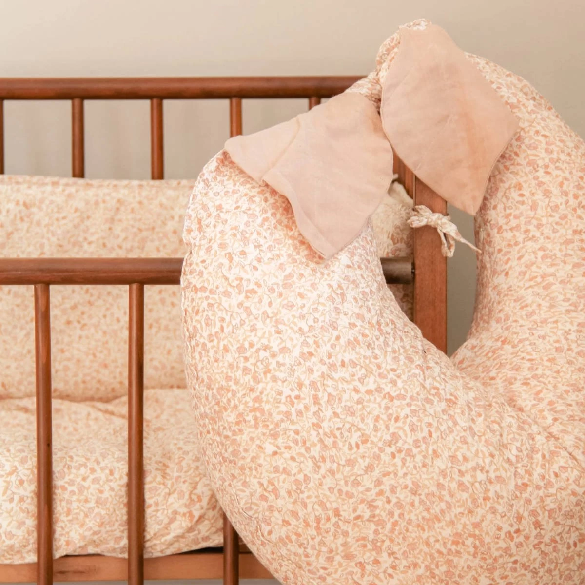 Deze prachtige bedomrander van het Deense designmerk That’s Mine heeft een vrolijk roze-oranje bloemenpatroontje. De beschermrand is 360 cm lang, dus geschikt voor een ledikant van 60 x 120 cm. Met de strikjes knoop je het gemakkelijk vast. Zo heeft je kind een comfortabele en veilige nacht, zonder harde randen en ziet het er meteen gezellig en geborgen uit.